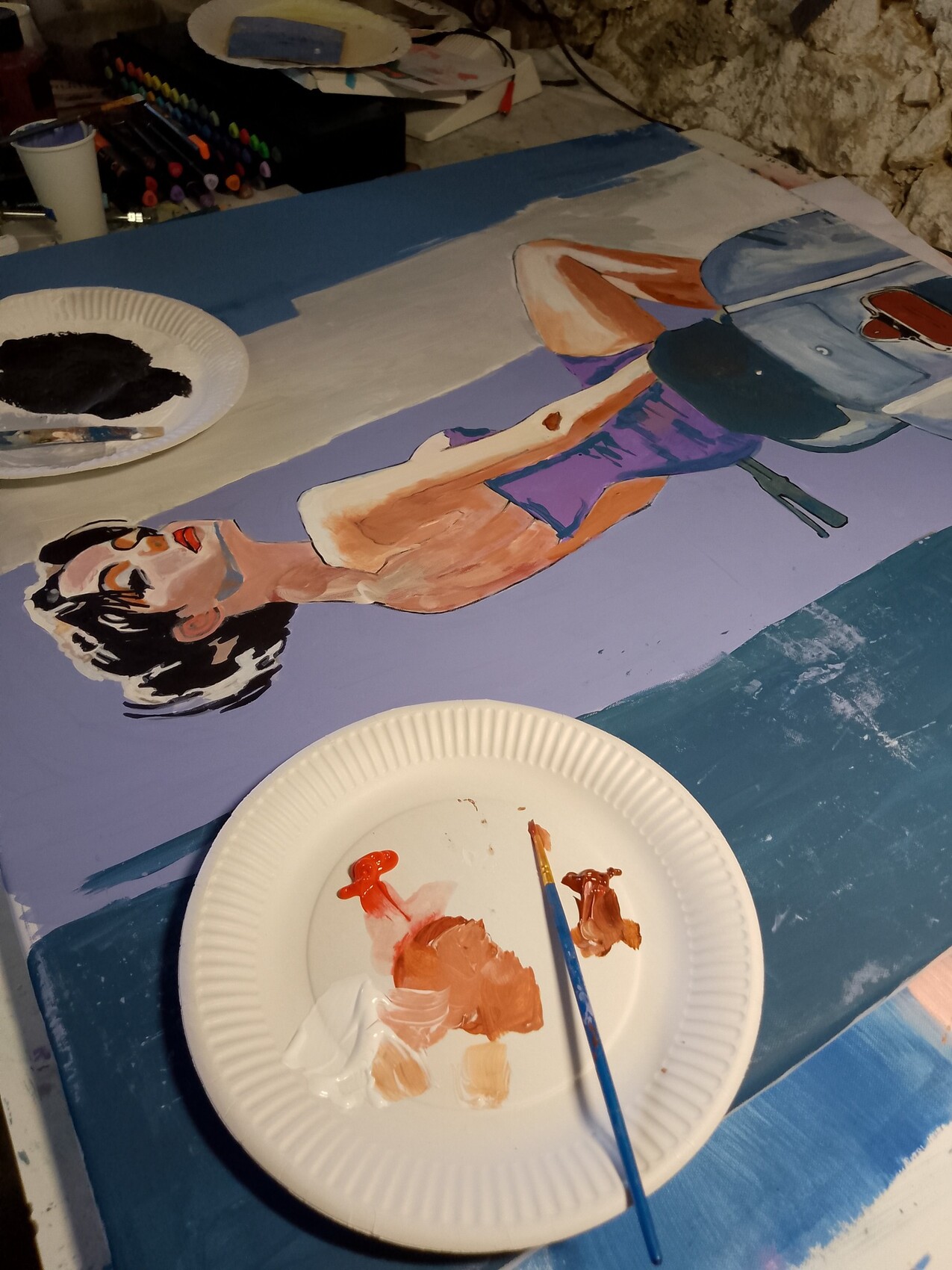 L'utilisation de peinture acrylique , de marqueur ainsi que des bombes aérosol permet d'obtenir une oeuvre originale , réalisée et signée de la main de l'artiste .